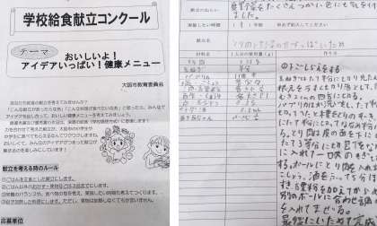 本校でも、毎年、保健給食委員会の児童がこのコンクールに献立を応募しています。今年も保健給食委員会の児童がバランスのよい給食の献立を一生懸命考えています。今年はどんな献立が仕上がるか楽しみです。途中経過の写真掲載しています。