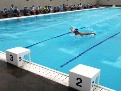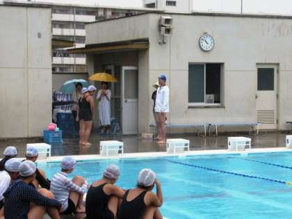 今年度は、津川選手に実際に学校のプールで泳いでいただきました。