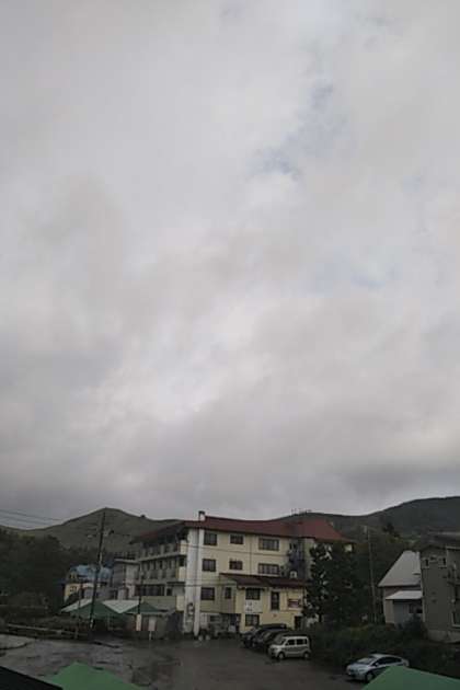 昨晩の大雨はやみ、現在の天候は小雨。雲の間から青空も少し…