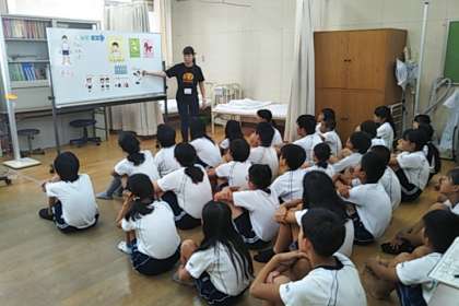 測定の前に保健室の先生から熱中症予防の授業を受け、水分の補給やその対処について学びました。