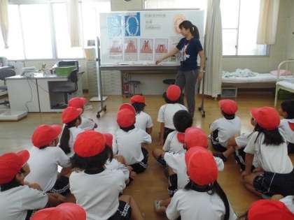 今日は2年生の発育測定でした。1学期に比べて身長も体重も増加しています。心も身体もしっかりと成長しています。その後は、養護教諭の島村先生から、歯の健康について教えていただきました。