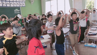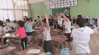 教室で振り付けを確認する3年生
