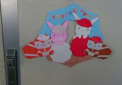 図書ボランティアさんによる、リースの運動会バージョンです、かわいいですね!いつも素敵な掲示物をありがとうございます!