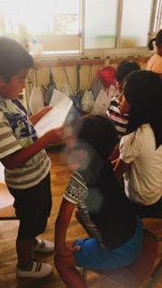作文が完成したので今日は発表会をしました。少人数のグループになって作文を聞き合いました。