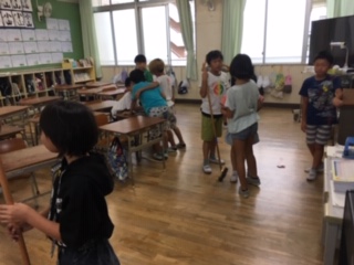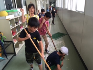 掃除をしています。両クラスとも、とてもきれいにできました☆