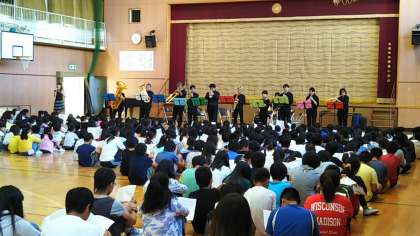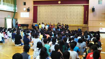 みんなが知っている曲の時はいっしょに歌ったり、代表の人たちがリズム名人になって演奏してもらうなど、とても楽しい時間となりました。