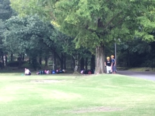 お昼ご飯前に、芝生で遊んでいる様子です。こんなに広いところで走り回れるのは羨ましい限りです。