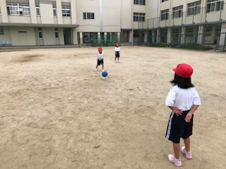 ボール使って転がしたり、投げたりしました。