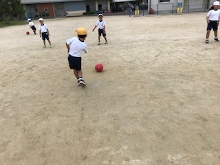 1年生は、ボールを使って体育をしました。