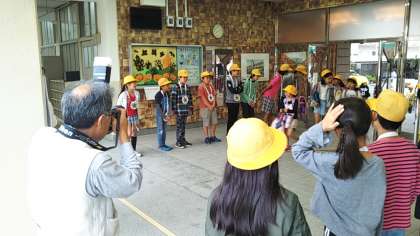 子どもたちも少し緊張気味でした。が、いつもと同じように丁寧なあいさつを心がけていました。代表の児童へのインタビューもバッチリでした。