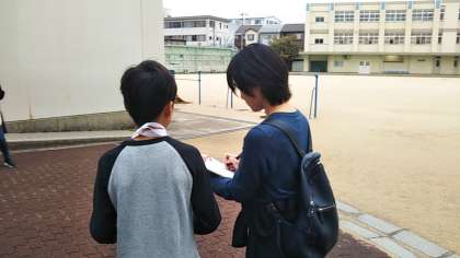 昨年度、大阪府からあいさつ運動について表彰されましたが、今日はその活動を取材するため来られました。