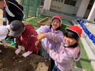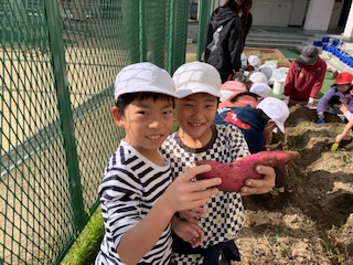 最初はスコップで恐る恐る掘っていましたが、そのうち、みんな手で一生懸命お芋を探していました。
