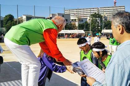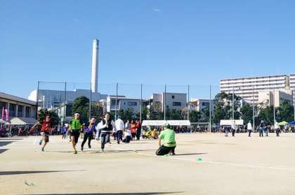 熱戦が繰り広げられ、小学校対抗リレーでは、区内13小学校の中で香簔小学校がなんと優勝しました!! よく頑張りましたー!