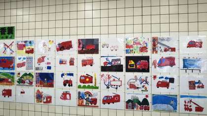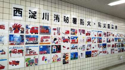 JR東西線「御幣島駅」の構内に、防火・防災のポスターが展示されています。