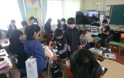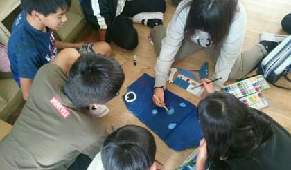 図画工作科での立体作品「夢にむかって」の制作に引き続き、作品展示用の共同作品を6年生のみんなで作りました。道路や建物、話し合いどんな所で活躍しているのか想像を膨らませ、制作にあたっていましたよ。