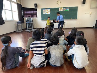 本校では校長経営戦略支援予算を活用し、ネイティブの先生の授業を低学年から実施しています。