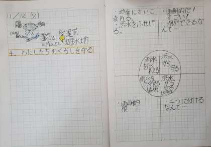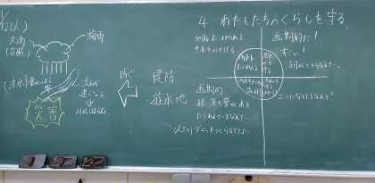 最後の学習では「流れる水のはたらきによる災害を防ぐ工夫」について学びました。
