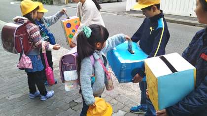 28日まで毎朝、玄関前で募金を呼び掛けています。募金をしようと思っている人は忘れないように募金箱に入れてください。