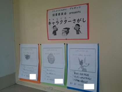 図書委員会では、みんなに図書室に来てもらえるように、イベント「図書室の本・キャラクターみつけ」に取り組みました。