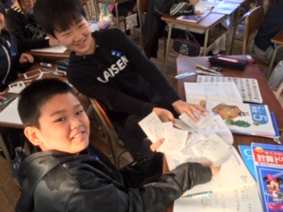 5年生になって、平行四辺形、三角形、台形の面積の公式を自分たちで導きだしました。
