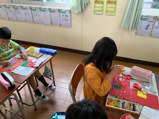 みんな思い思いの絵を描いてお気に入りのものを作りました。