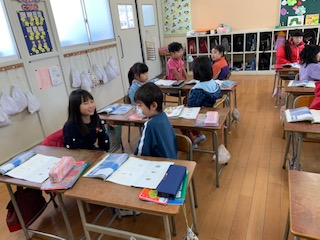 親戚で集まったこと、テーマパークや公園へ遊びに行ったこと、なわとびを頑張ったことなど。楽しそうに友達にお話しをする姿を見ていると、本当に充実した冬休みだったのだなぁと担任は感じています^−^。