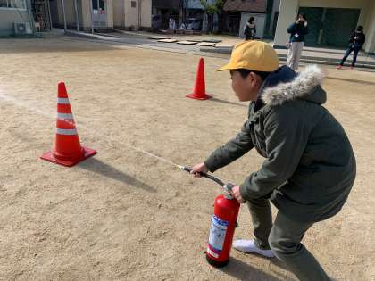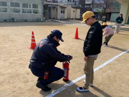 消火器体験では消火器の使い方を学ぶことができました。使う機会がないことが一番ですが、もしそのような状況に合った時には今日の訓練を思い出してほしいと思います。