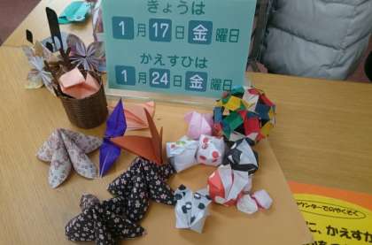 図書室の貸出カウンターには、いつも素敵な折り紙作品が置かれています。子どもたちを迎えてくれる、かわいい雪うさぎは、図書ボランティアさんによるものです。いつも素敵な作品をありがとうございます。