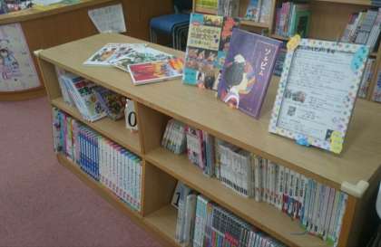 水曜日には、学校図書館補助員の清村先生が図書館にある本を紹介された「としょかんだより」を掲示して下さいました。紹介されている本も棚に置いて下さっています。