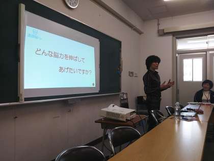 講演後は教職員に対して速読の効果と脳の活性化、子どもたちにつけたい力や脳力の使い方などを研修していただきました。