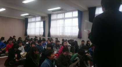 来月14日の卒業遠足・キッザニア甲子園についての説明をしました。