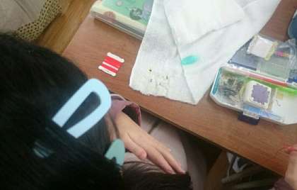 ぞうきんをぬっています(6年生)