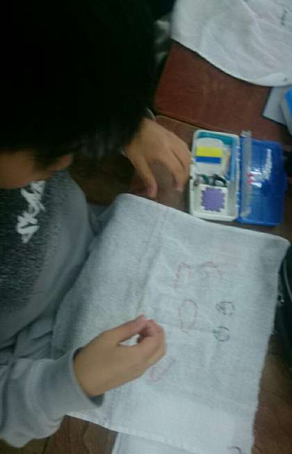 家庭科では、「刺繍入りぞうきんづくり」に取り組んでいます。ご家庭で古タオルをご用意くださいまして、ありがとうございました。
