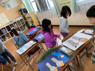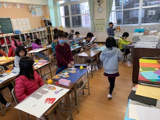 図工科では紙版画の版を作っています。2学期に国語科で勉強をした「かさこじぞう」のシーンで作っています。