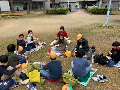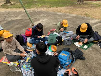 読売新聞社へ行く前に野崎公園でお弁当を食べました。