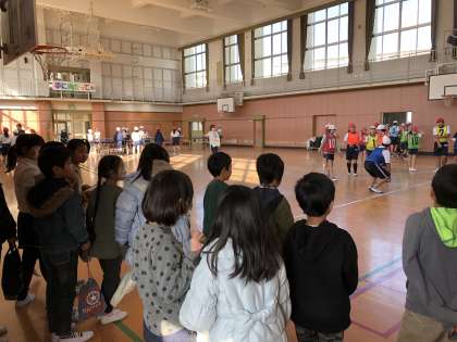 高学年のお兄さんお姉さんの活動する様子を緊張の面持ちながら、わくわくしながら見学しました。