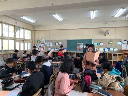 来週の参観日で発表するプレゼンテーションの練習をしています。