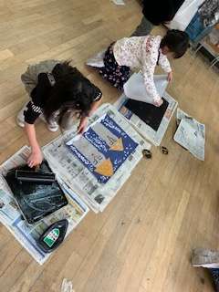 最初はへっぴり腰でしたが、徐々に大胆にインクを付けて、とっても楽しそう!!