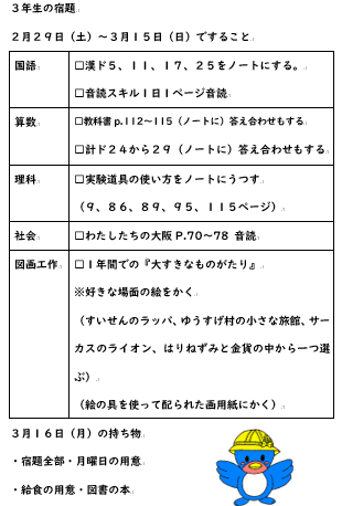 金曜日に私たち担任は宿題をお知らせするプリントを配りました。