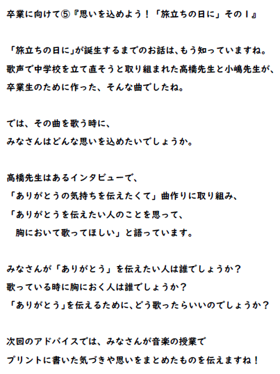 卒業に向けて5⃣『思いを込めよう!「旅立ちの日に」その1』