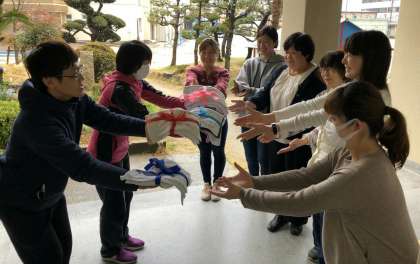 6年生にかわって、今日、担任の先生たちにお渡ししました。休校があけたら、どんなししゅうが入っているか、ぜひ見てみてくださいね。