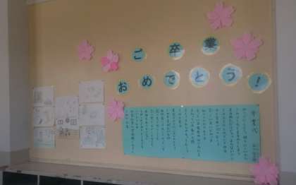 学校図書館補助員の清村先生が、卒業式に向けた掲示をしてくださいました。