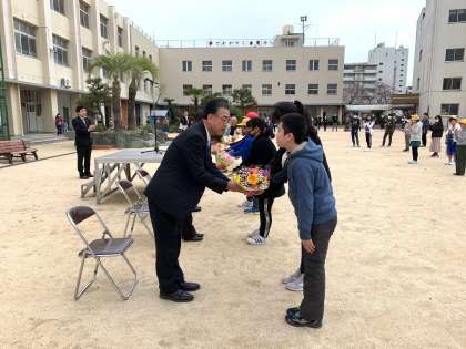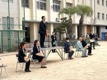 たくさんの児童や保護者の方々が参加され、転任される教職員の方々と顔を合わせて挨拶することができました。
