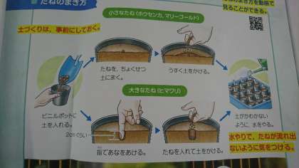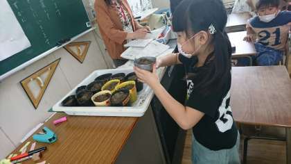 今日は外国語の学習として絵本を、理科の学習として種をまきました。