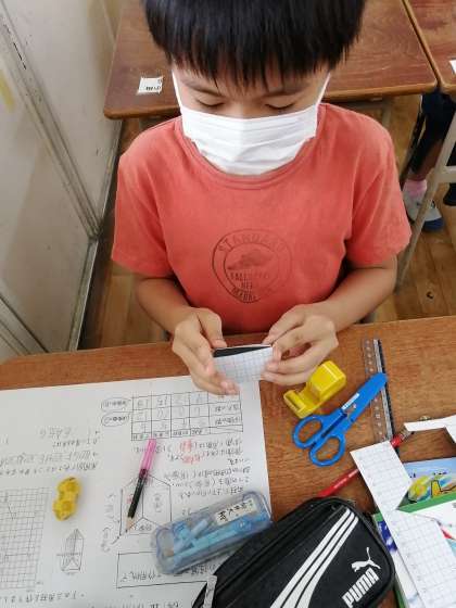 火曜日の学習では、5年生の未履修の角柱と円柱の授業を行いました。