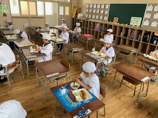 感染予防の観点から、食前食後の手洗いアルコールをしっかり行い、ドキドキワクワクのランチタイムでした。