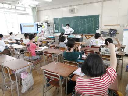 6年1組では、即興の劇が繰り広げられていました。