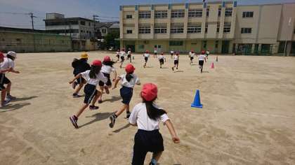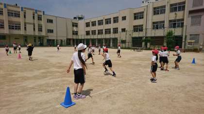 運動場に出でて、久しぶりにみんなで動きました。