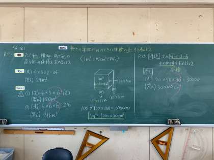 「長さの単位がmのときの体積の求め方」と「容積の求め方」を学習しました。