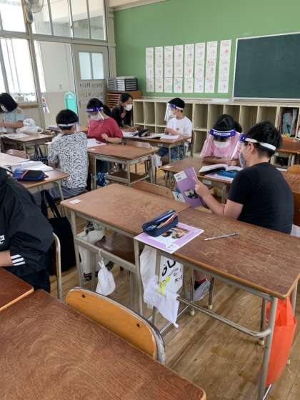 フェイスシールドを活用して、みんなで道徳みつけをしたところを交流しました。